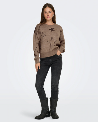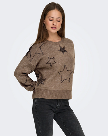 Maglia Only con stampa di stelle, caratterizzata da un design moderno e femminile. Realizzata in morbido tessuto misto poliestere riciclato e lana, offre comfort e calore. Ideale per look casual chic e da indossare facilmente in diverse occasioni.