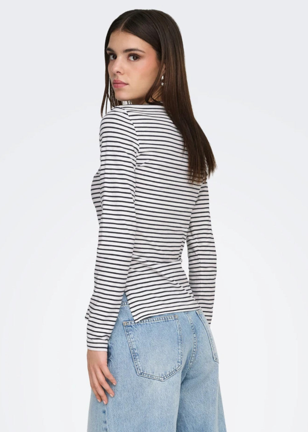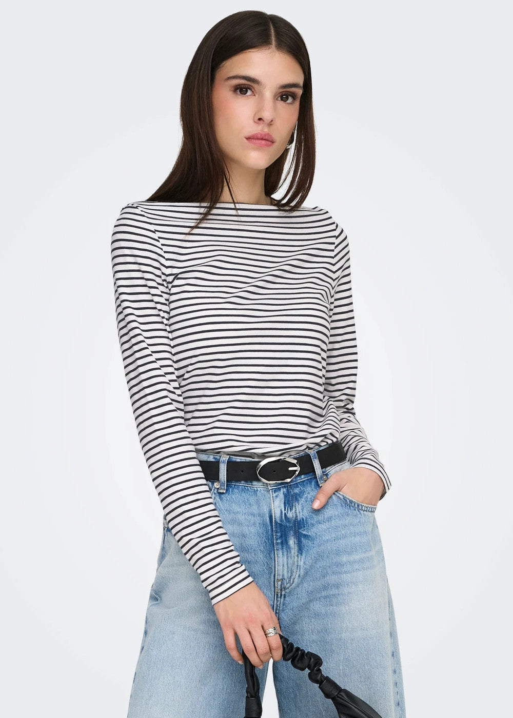 ONLY - T-Shirt scollo barca - BLU/BIANCO