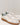 Scarpe sportive bianche con dettagli verdi, lacci bianchi e suola marrone.