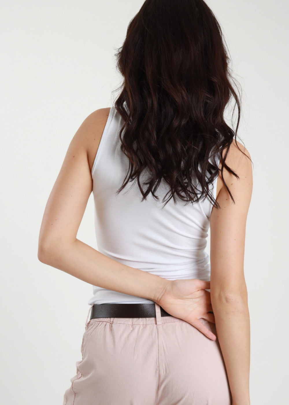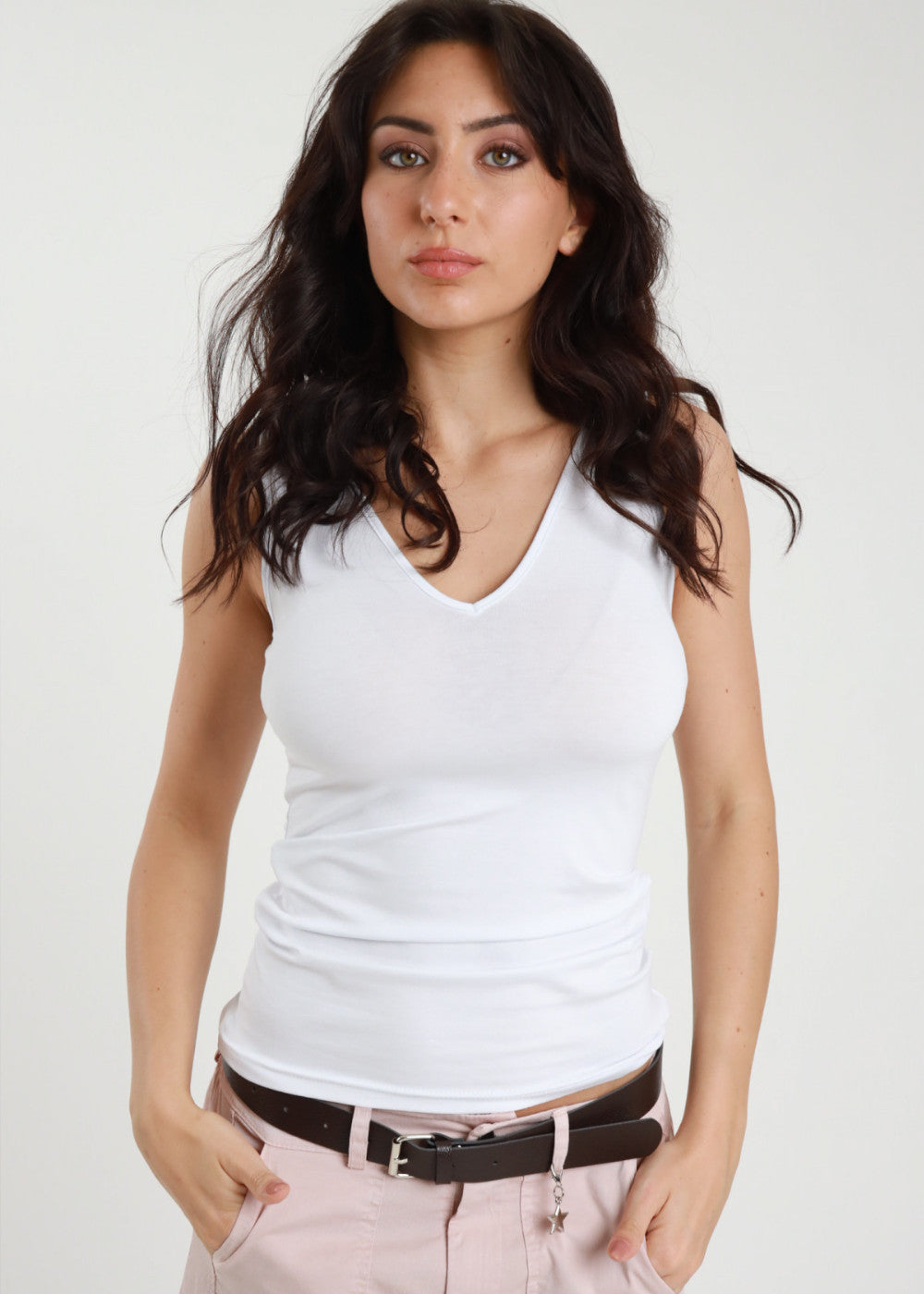 Canotta in Viscosa Elasticizzata con Doppio Scollo a V.